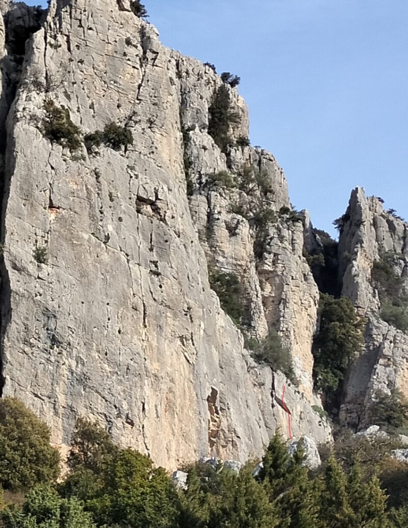 NOTE: It follows a long vertical crack. There's a middle lower off of you don't have an 80 m rope. 17 quickdraws to the top